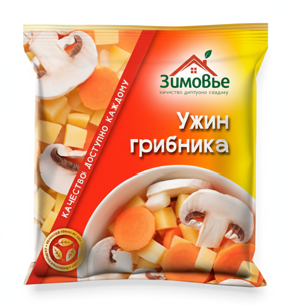 Ужин грибника от торговой марки «Зимовье» — это сытное и ароматное блюдо, которое станет идеальным решением для быстрого ужина. В состав этой замороженной смеси входят натуральные шампиньоны, картофель, лук и морковь. Продукт производится ГК «Скайс» с использованием технологии шоковой заморозки. Благодаря этому все ингредиенты сохраняют свежесть, текстуру и полезные свойства. Важно отметить, что овощи и грибы тщательно вымыты и не содержат консервантов.